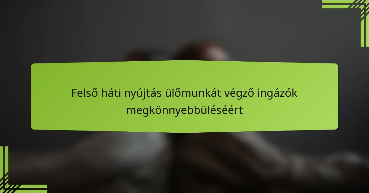 A hatékony felső háti nyújtások enyhíthetik a feszültséget és javíthatják a testtartást, különösen hosszú ülés után. A statikus és dinamikus nyújtások, valamint a jóga pózok keverékének beépítése jelentős enyhülést nyújthat és fokozhatja az általános jólétet.
