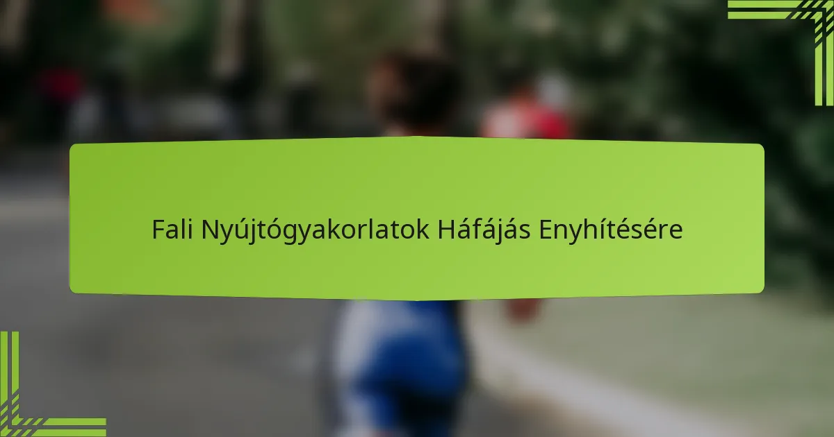 A falnyújtó gyakorlatok jelentősen enyhíthetik a hátfájást a rugalmasság javításával és az izomfeszültség csökkentésével. Hatékony nyújtások közé tartozik a fal macskanyújtás, a fal hamstring nyújtás, a fal mellkasnyitó nyújtás és a fal oldalsó nyújtás, mindegyik különböző izomcsoportokat céloz meg, amelyek hozzájárulnak a hát kellemetlenségeihez.